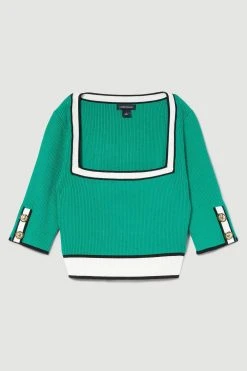 Karen Millen Ponte Gold Back Zip Detail Long Sleeve Top