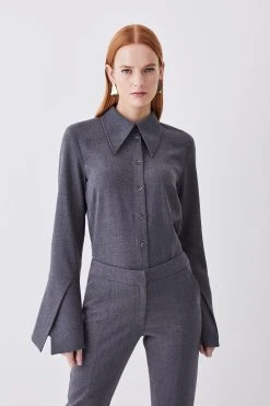 Karen Millen Premium Wool Flannel Flare Cuff Detail Shirt