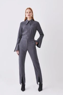 Karen Millen Premium Wool Flannel Split Cuff Detail Slim Leg Trouser