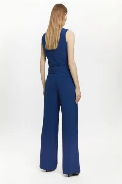 Karen Millen Satin Back Crepe Pleat Detail Wide Leg Trouser