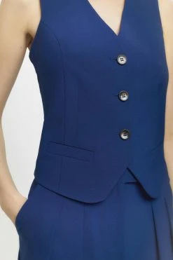 Karen Millen Polished Stretch Wool Blend Waistcoat