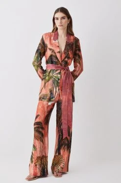 Karen Millen Satin Palm Print Belted Woven Jacket