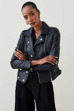 Karen Millen Leather Strong Shoulder Biker Jacket