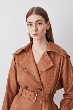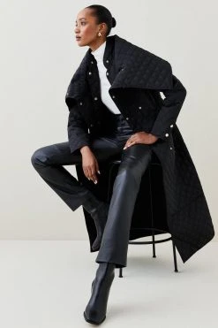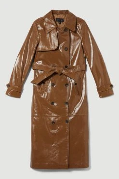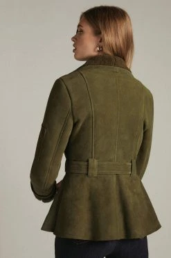 Karen Millen Lydia Millen Shearling And Leather Shawl Collar Belted Coat