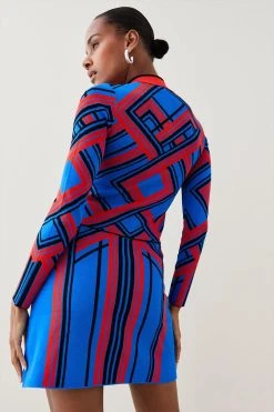 Karen Millen Placement Stripe Jacquard Zip Through Jacket