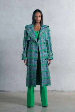 Karen Millen Shearling And Leather Houndstooth Trim Detail Coat