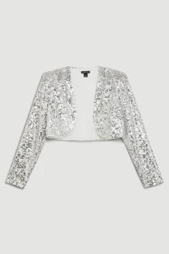 Karen Millen Sequinned Jacquard Cropped Jacket