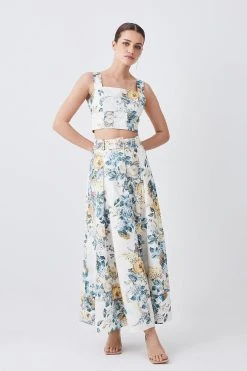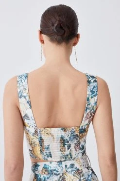 Karen Millen Lydia Millen Petite Trailing Floral Cotton Sateen Crop Top