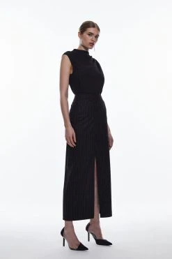 Karen Millen Petite Pinstripe Tab Detail Midaxi Skirt