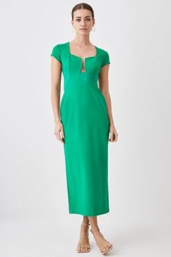 Karen Millen Petite Pleated Button Detailed Woven Midi Dress