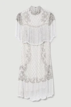 Karen Millen Petite Pearl Embellished Fringed Woven Mini Dress