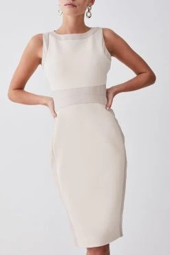 Karen Millen Petite Ponte And Faux Leather Pencil Midi Dress