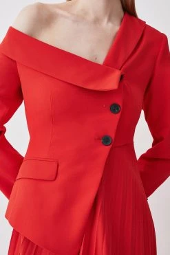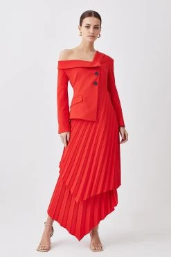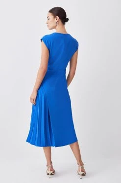 Karen Millen Petite Tailored Crepe Asymmetric Pleated Midi Dress