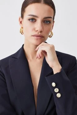 Karen Millen Petite Tailored Military Pleat Midi Dress