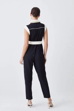Karen Millen Petite Twill Button Detail Woven Wrap Jumpsuit