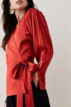 Karen Millen Petite Viscose Satin Woven Boyfriend Shirt