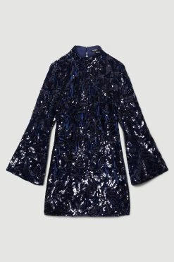 Karen Millen Petite Velvet Sequinned Woven Mini Dress