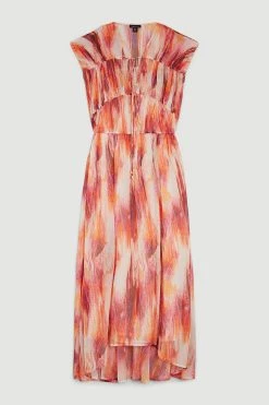 Karen Millen Petite Watercolour Crinkle Shirred Woven Maxi Dress