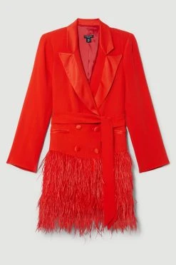 Karen Millen Petite Viscose Satin Crepe Feather Hem Double Breasted Tux Mini Dress