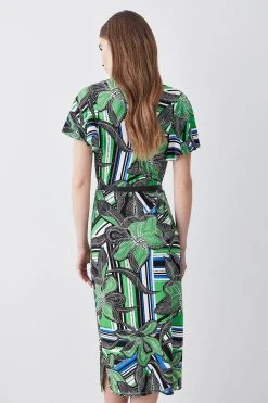 Karen Millen Petite Angel Sleeve Viscose Blend Jersey Midi Dress
