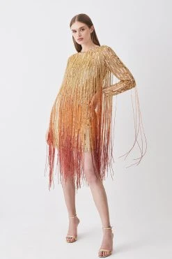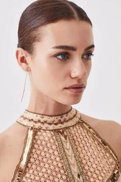 Karen Millen Petite Bodice Beaded And Embellished Fringed Maxi