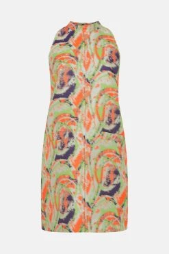 Karen Millen Petite Animal Shirred Halter Woven Mini Dress