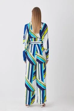 Karen Millen Petite Bold Stripe Belted Woven Jumpsuit