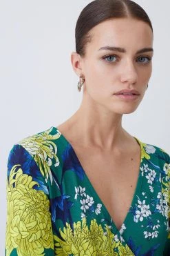 Karen Millen Petite Floral Belted Viscose Blend Jersey Skater Dress