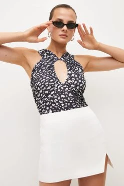 Karen Millen Animal Print Cut Out Jersey Crepe Top