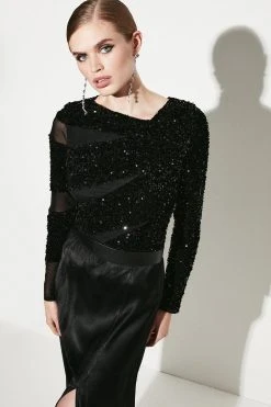 Karen Millen Bandage Knit Cold Shoulder Stud Detail Asymmetric Top