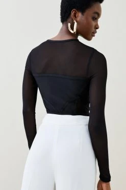 Karen Millen Bandage Corset Mesh Zip Detail Top