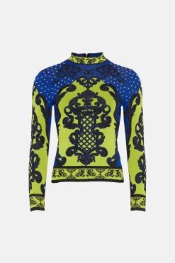 Karen Millen All Over Baroque Jacquard Knit High Neck Top