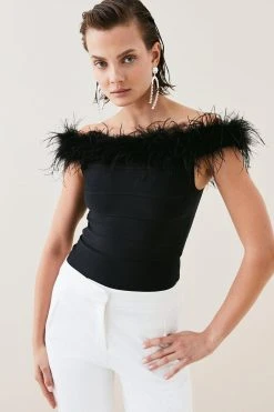Karen Millen Bandage Form Fitting Bardot Bodysuit