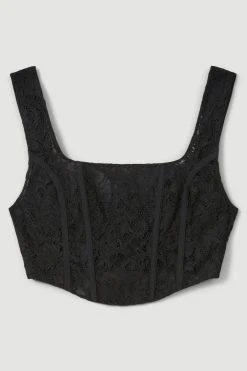 Karen Millen Corded Lace And Mesh Panelled Woven Corset