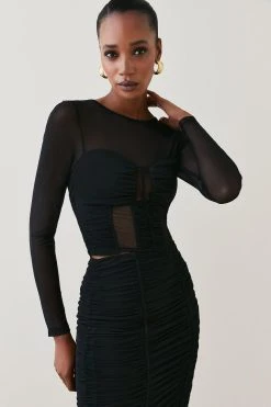 Karen Millen Corset Detail Ruched Mesh Jersey Cropped Top