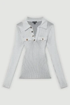 Karen Millen Collared Eyelet Trim Detail Jersey Top