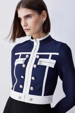 Karen Millen Bandage Knit Military Trim And Mesh Top