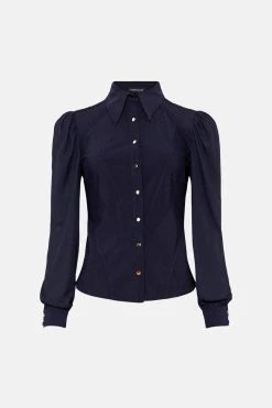 Karen Millen Button Through Georgette Sleeved Jersey Blouse