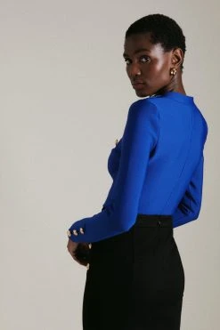 Karen Millen Bandage Knit Military Top In Recycled Yarn