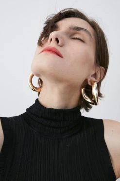 Karen Millen Slinky Sleeveless Roll Neck Rib Knit Top