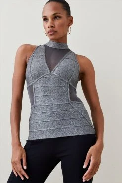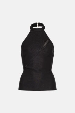 Karen Millen Sparkle Bandage Knit Cut Out Halter Top