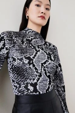 Karen Millen Snake Print Strap Detail Jersey Crepe Top