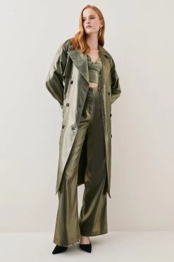 Karen Millen Metallic High Waist Split Detail Woven Flare