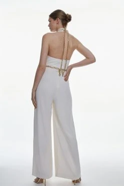 Karen Millen Soft Tailored Chain Detail Halter Jumpsuit