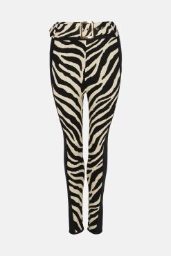 Karen Millen Zebra Jacquard Bandage Knit Belted Trousers