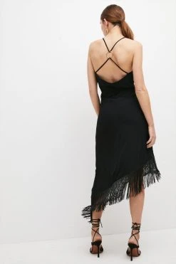 Karen Millen Asymmetric Fringe Strappy Cami Midi Dress