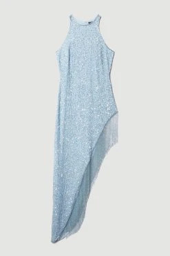 Karen Millen Asymmetric Hem Fringe Hater Midi Dress