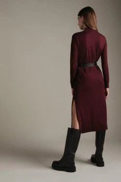 Karen Millen Cashmere Blend Funnel Neck Belted Midi Dress