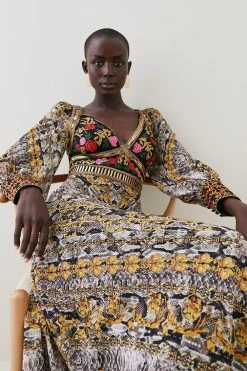 Karen Millen Baroque Embroidered And Bead Woven Midi Dress