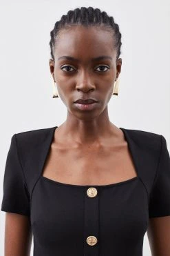 Karen Millen Ponte Belted Button Through Jersey Mini Dress
